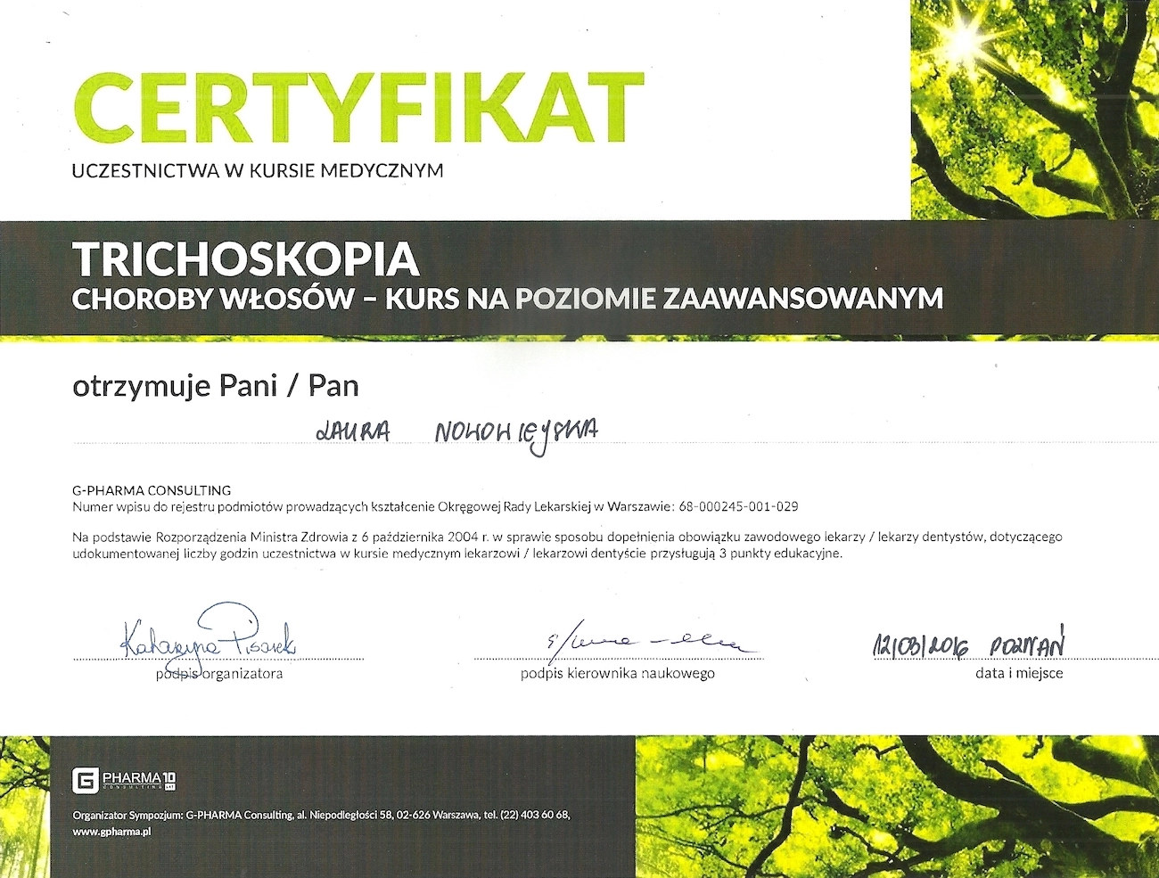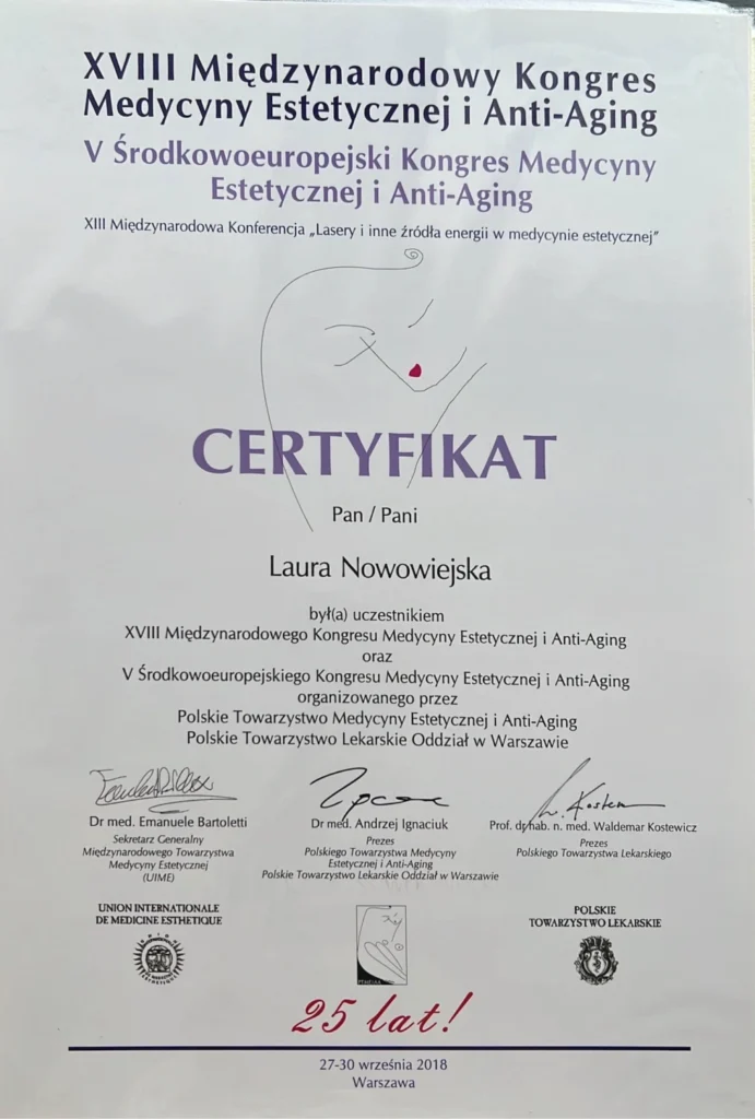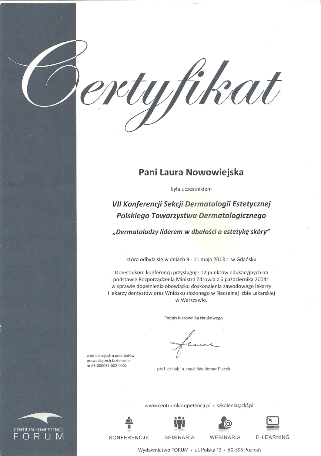 Jestem członkiem Polskiego Towarzystwa Dermatologii i Wenerologii oraz Sekcji Dermatologii Estetycznej Polskiego Towarzystwa Lekarskiego. Swoją wiedzę stale poszerzam poprzez uczestnictwo w licznych konferencjach i szkoleniach w Polsce i za granicą.