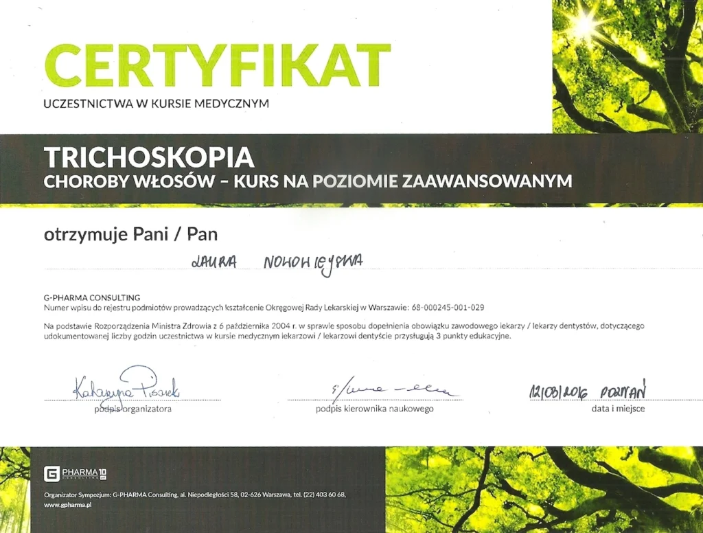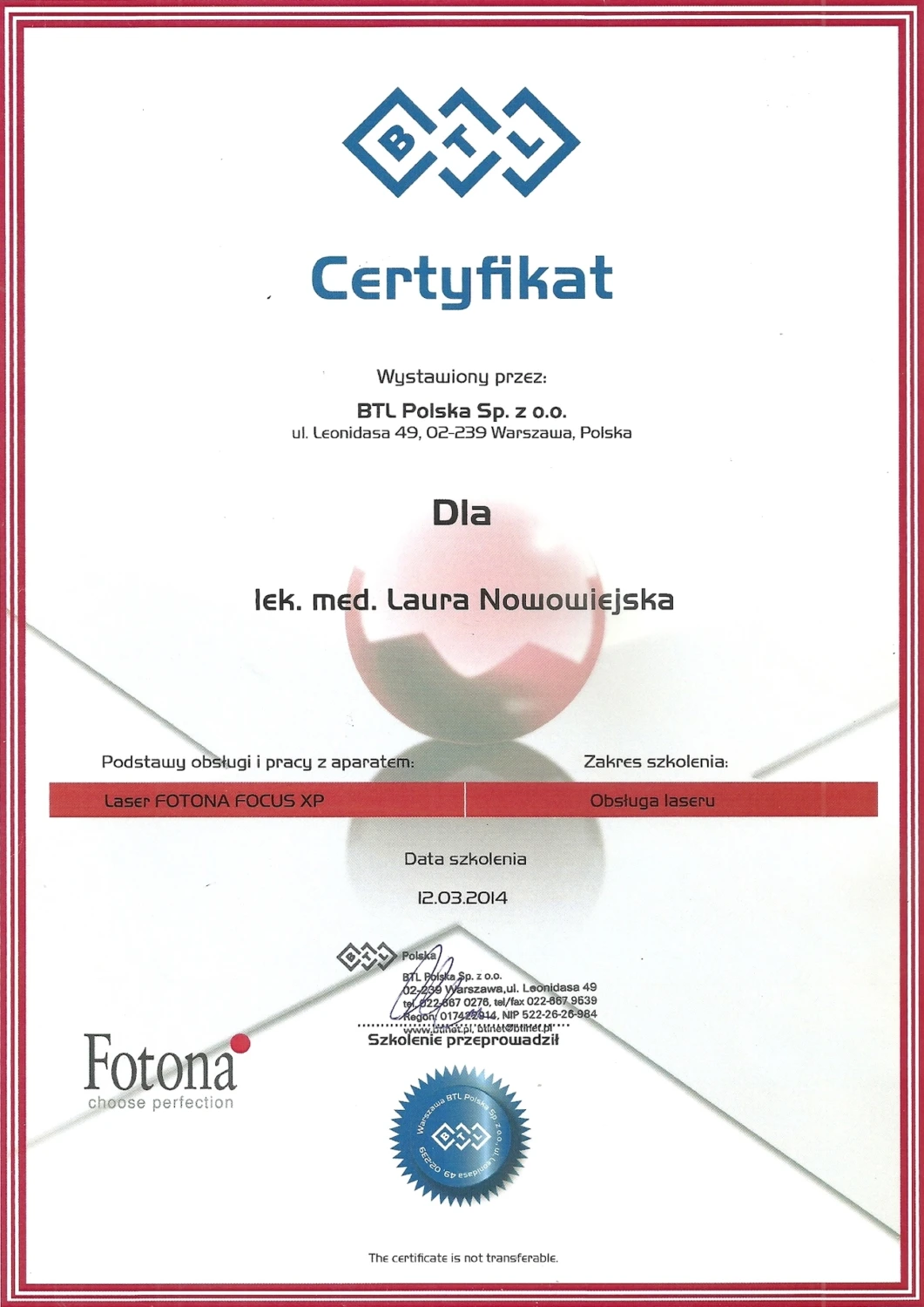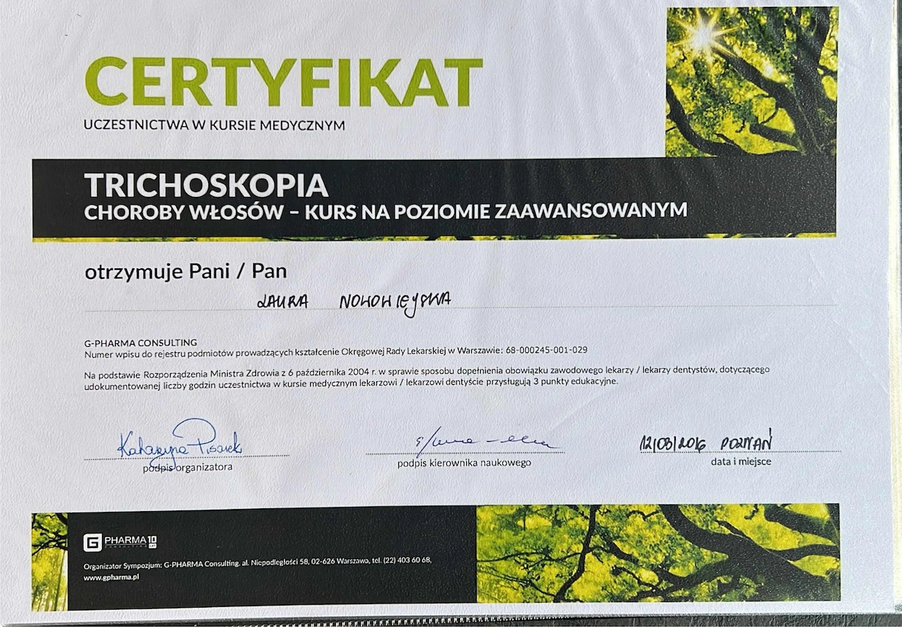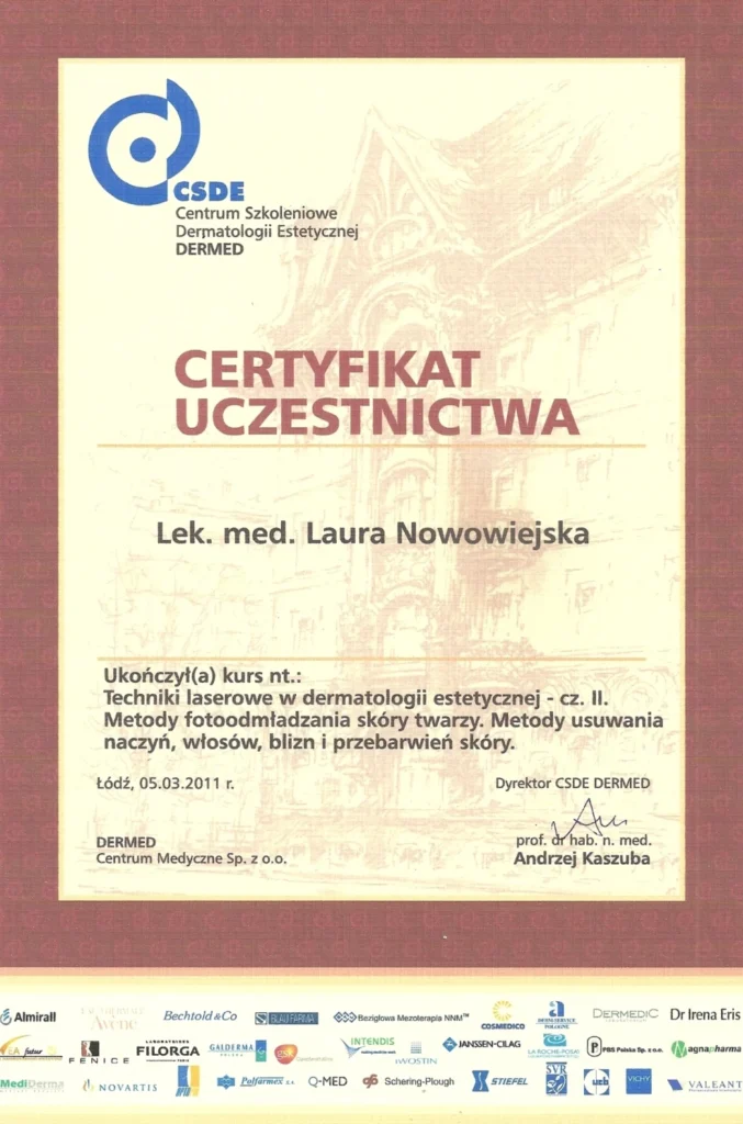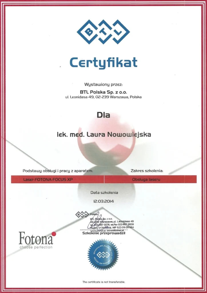 Jestem absolwentem Collegium Medicum Uniwersytetu im. Mikołaja Kopernika w Bydgoszczy. Staż specjalizacyjny z zakresu dermatologii i wenerologii odbyłam w Klinice Dermatologii, Chorób Przenoszonych Drogą Płciową i Immunodermatologii Szpitala Uniwersyteckiego nr 1 im. A. Jurasza w Bydgoszczy.